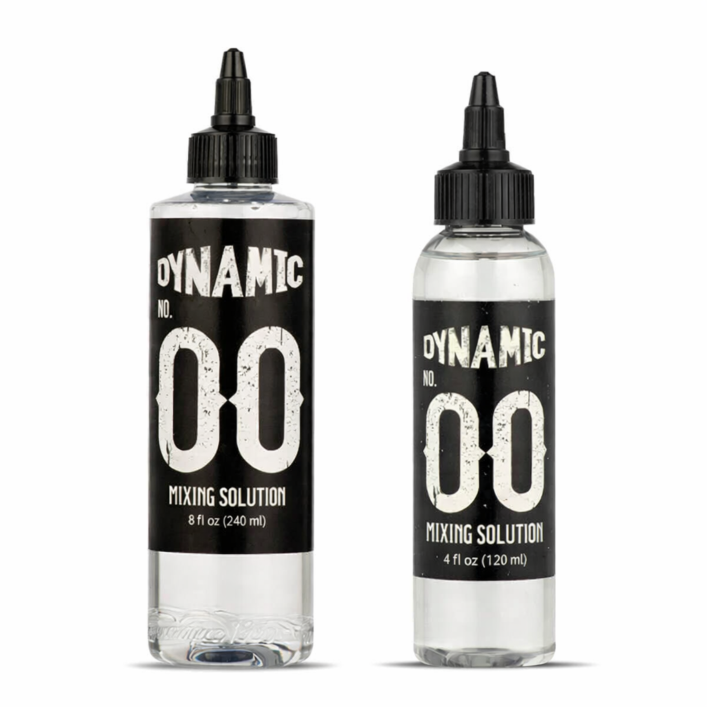 Dynamic Ink 00 Mixing Solution is the perfect product to mix and thin tattoo ink from Dynamic Color to create different grey washes.