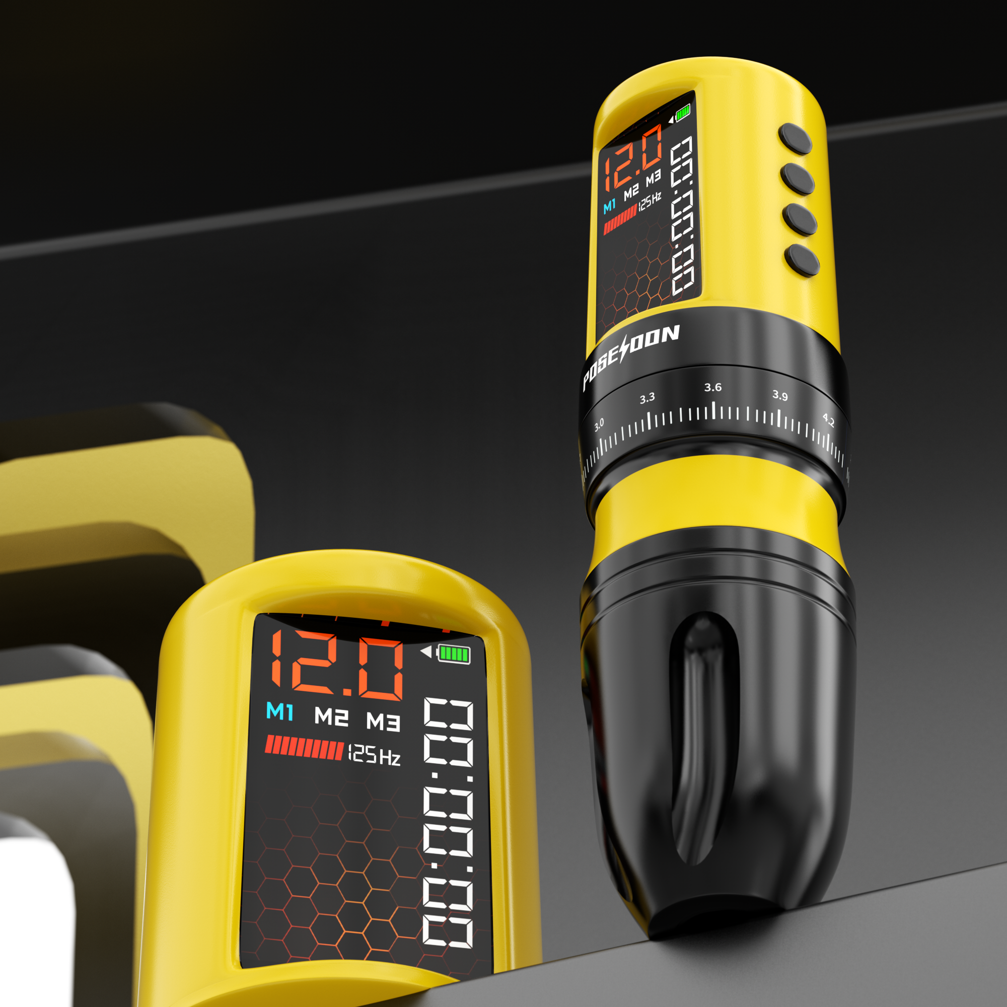 The intuitive honeycomb LED screen provides real-time feedback for precise control, while the 4.2mm stroke depth enables consistent, accurate line work and shading. Engineered for artists who demand reliability and precision, the POSEIDON BEE combines wireless convenience with the power needed for detailed tattoo applications.